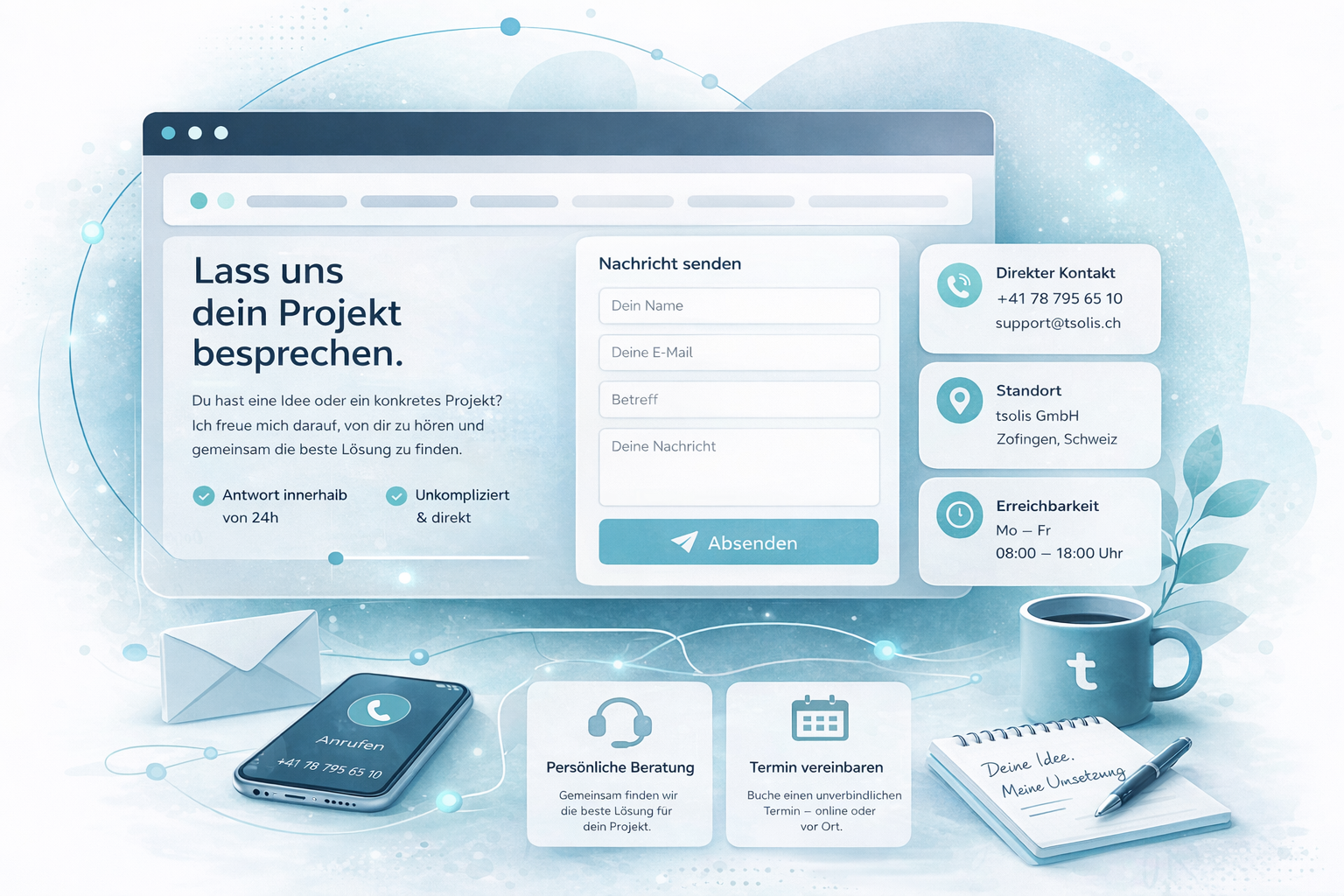 Buche direkt einen Termin und wir schauen uns dein Projekt gemeinsam an. Egal ob Webseite, Software oder Smarthome – du bekommst eine ehrliche Einschätzung und eine klare Lösung.